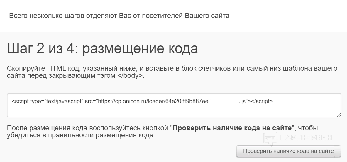 5. Следующим шагом потребуется добавить виджет на сам сайт в виде HTML-кода. Инструкция достаточно понятная, такие же действия требуются для Яндекс.Метрики или LiveInternet. Если сайт сделан с помощью системы управления (Joomla, Drupal, Wordpress, Bitrix, Amiro CMS, Datalife Engine, Netcat, Simpla CMS), есть инструкция, пусть и сделанная не до конца. Наконец, потребуется проверить наличие скрипта с помощью кнопки.