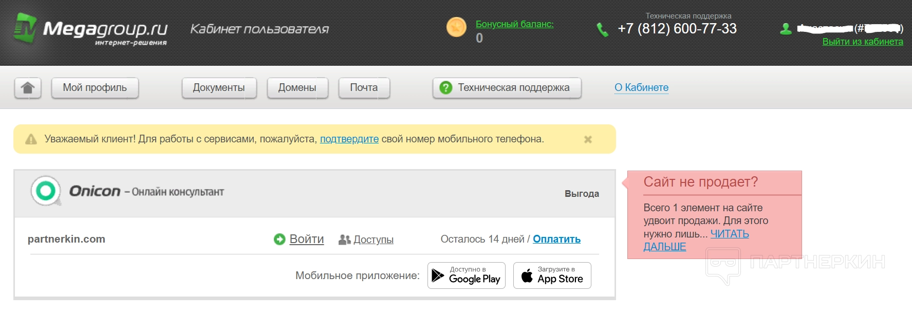Полученная учетная запись открывает доступ ко всем сервисам MegaGroup — это и реклама, и CRM-система, и даже электронный почтовый ящик. Для того, чтобы пользоваться ими всеми, потребуется подтвердить номер телефона.