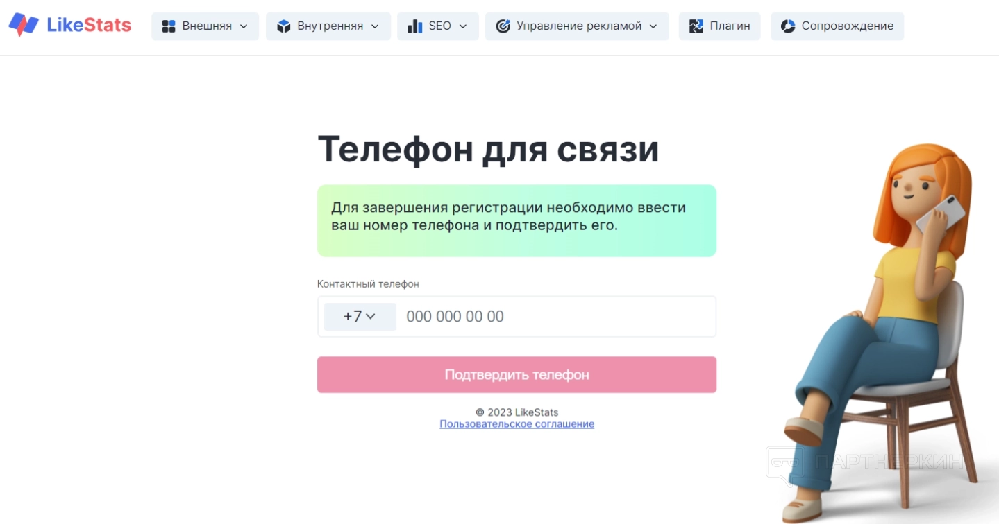 В процессе регистрации нужно указать электронную почту, логин и пароль. При этом необходимо согласие пользователя на то, чтобы система могла отправить проверочный код на почту, а потом на телефон. Также менеджер может связаться с пользователей по номеру при необходимости.