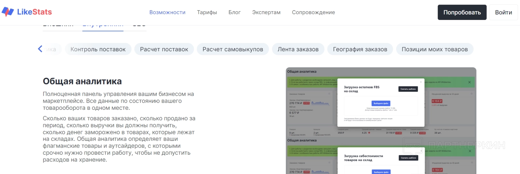 Внутренняя аналитика — с помощью этого инструмента пользователи могут в общем проанализировать магазин, узнать финансовые показатели, проверить поставки товаров, рассчитать поставки, посмотреть географию заказов, узнать позиции своих товаров и многое другое.