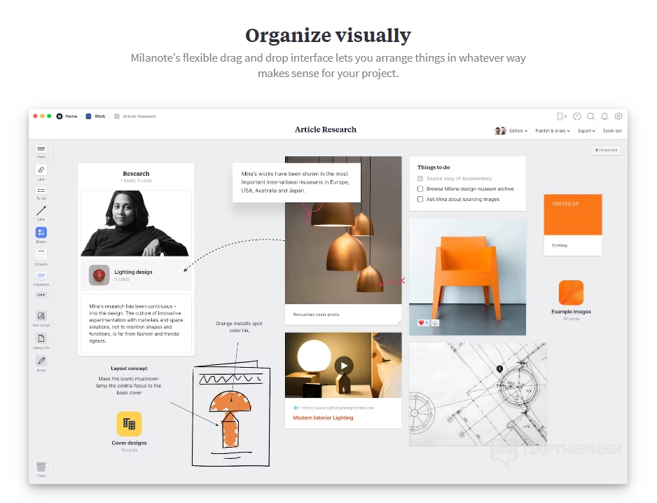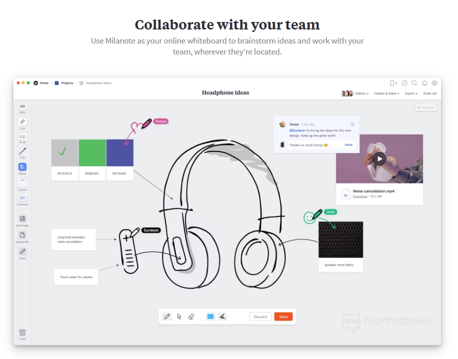 Несмотря на то, что стоимость слегка завышена для подобного проекта, он предлагает расширенный инструментарий для работы — помимо простой записи заметок в безграничном пространстве, пользователи могут: