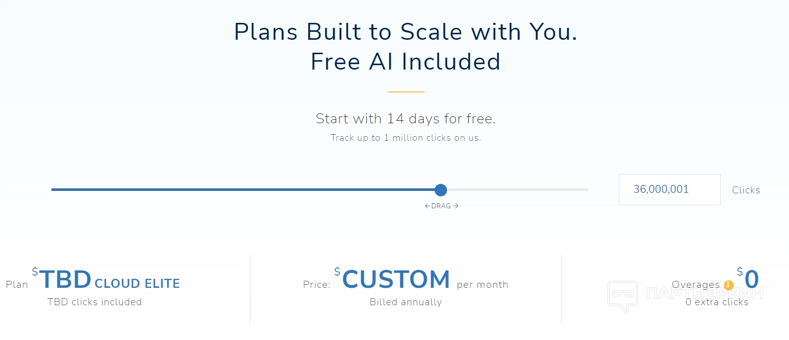 - Cloud Pro выставляется ежегодно или ежемесячно и предлагает до 5 000 000 кликов, 5 настраиваемых доменов, а за дополнительные домены вы платите 10 долларов за домен в месяц, также имеется возможность подключения VIP-обслуживания (249 долларов/месяц).
