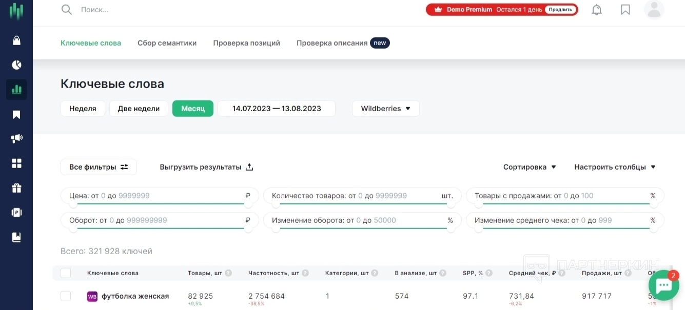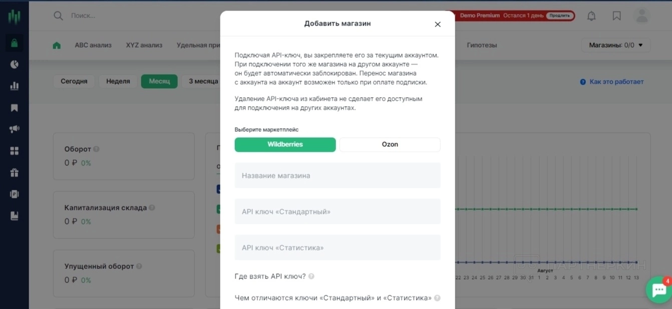 - Premium — средний тариф, в котором присутствуют все те же стандартные инструменты, но уже с большими лимитами и возможностями. Что касается маркетплейсов, то работать на данном тарифе можно со всеми 7, с которыми работает площадка;