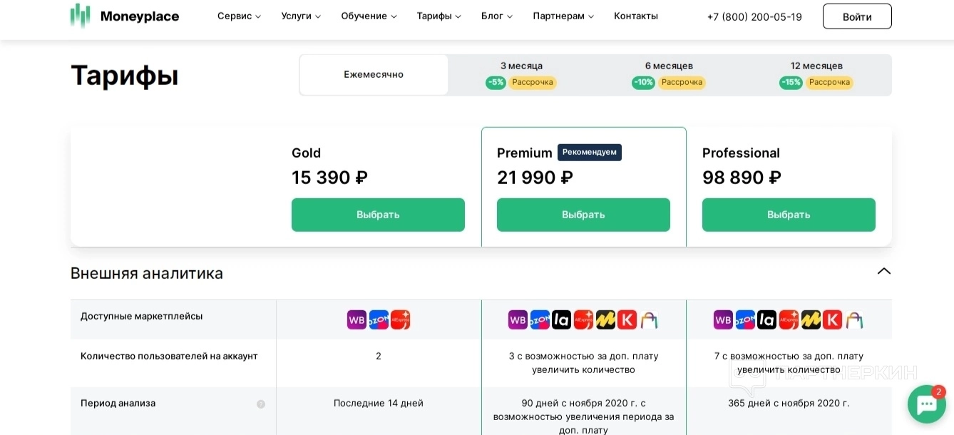 - Gold — самый простой тарифный план, включающий в себя базовые инструменты и работу с такими маркетплейсами как Wildberries, Ozon и AliExpress;