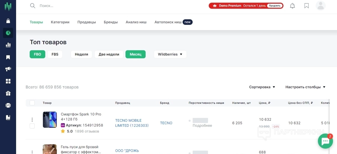 Следующий раздел — Аналитика. Здесь владелец магазина может отслеживать самые прибыльные категории, продавцов, бренды, проводить анализ ниш и многое другое. Полученные данные могут пригодиться в выборе следующих товаров, регулировки бюджета и так далее.