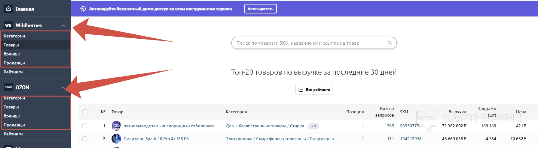 - Wildberries . Здесь вебмастер может анализировать категории, товары, бренды и продавцов в рамках Wildberries.