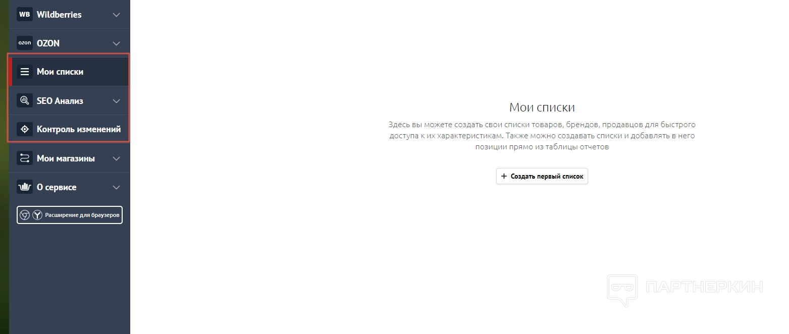 - Мои списки . Раздел для создания собственных списков товаров, брендов и продавцов. Такие списки нужны для быстрого доступа к их характеристикам.