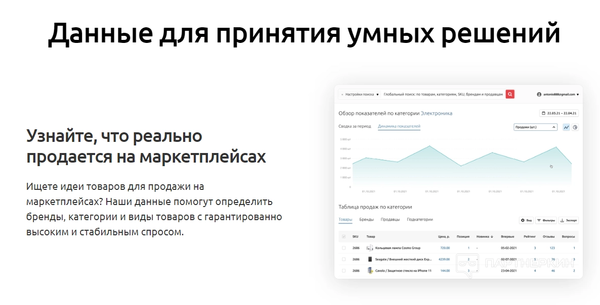 - Анализ ниш, поиск новинок и трендов . Сервис помогает исследовать рынок, анализировать популярные ниши, находить новинки и определять актуальные тренды в мире онлайн-продаж, изучать особенности брендов, смотреть рейтинги самых продаваемых товаров.