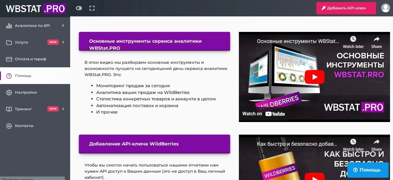 В разделе Помощь пользователь может еще раз изучить информацию о возможностях сервиса или посмотреть подробные видеоинструкции к инструментам.