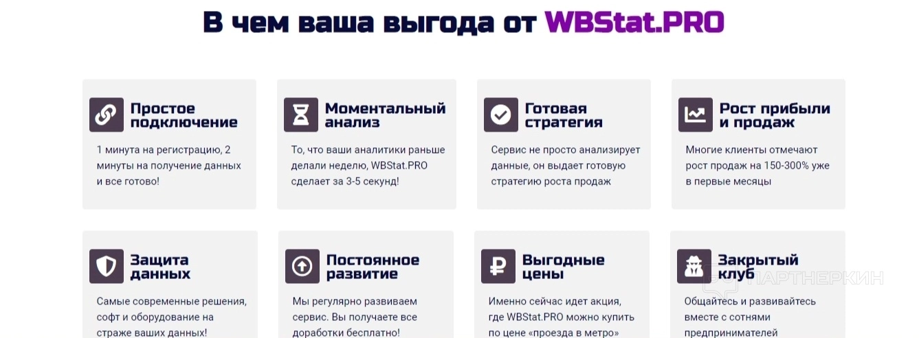 1. SEO-оптимизация. Сервис способен провести полную SEO-оптимизацию карточек товаров на Wildberries с гарантией их попадания в более чем 10 рубрик. Помимо этого, пользователь может рассчитывать на широкий охват по поисковым запросам, высокие позиции в поисковой выдаче, дополнительную стратегию по продвижению для выхода в ТОП, подробная отчетность и многое другое.