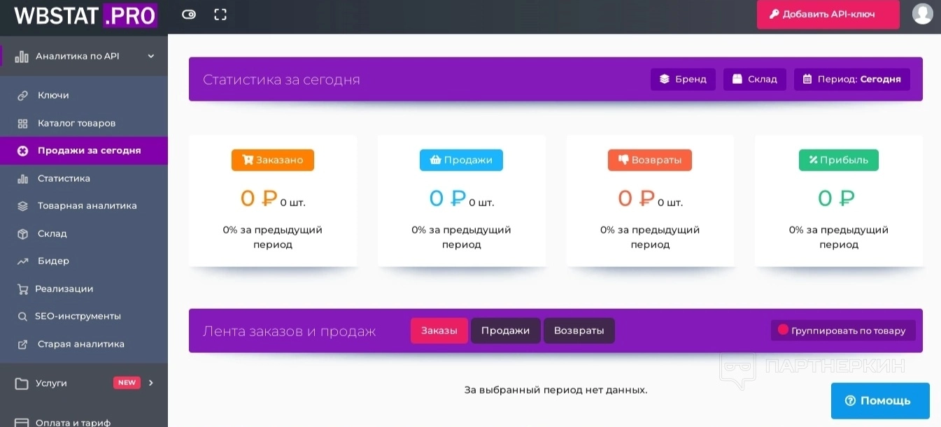 В целом, раздел Аналитика по API содержит в себе основную часть инструментов, с которыми в дальнейшем приходится работать владельцу аккаунта. Здесь он может посмотреть отчетность по продажам, статистику магазина в целом, изучить остатки склада, посмотреть реализацию и так далее. Все эти разделы будут отображать данные в режиме реального времени или по конкретному запросу пользователя.