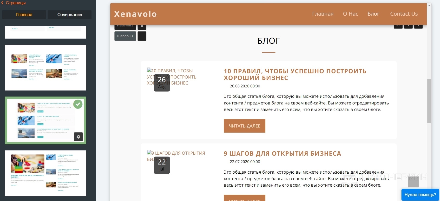 Если пользователь не нашел подходящего шаблона, он может нажать на кнопку «Нужна помощь?» в редакторе. Так можно вызвать чат техподдержки. Сотрудники подскажут оптимальные варианты, также они могут договориться с разработчиками, чтобы те создали индивидуальный шаблон под запрос клиента. Постоянно добавляются новые шаблоны. Пользователь может поделиться своими идеями относительно шаблонов с техподдержкой в любой момент.