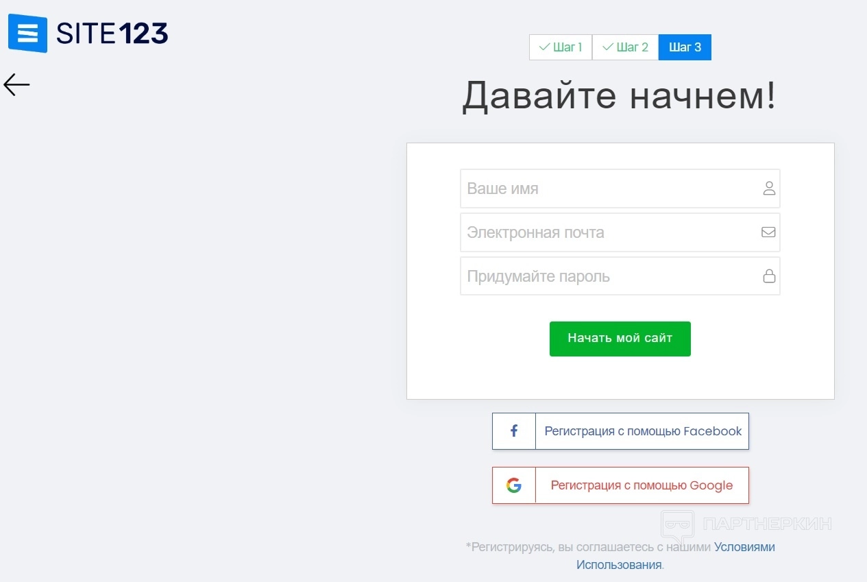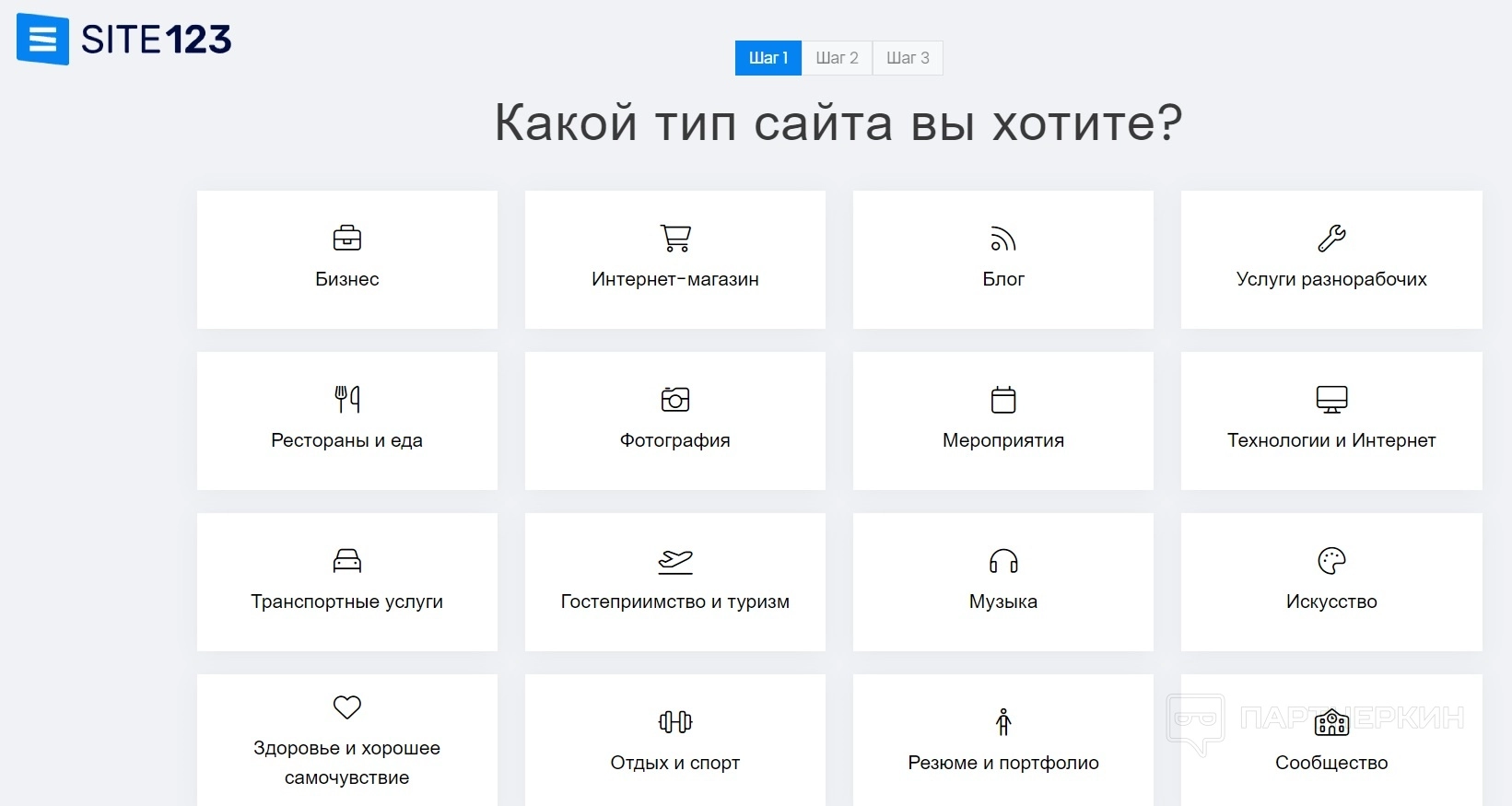 Сервис позиционируется как простой конструктор для создания сайтов в три шага.