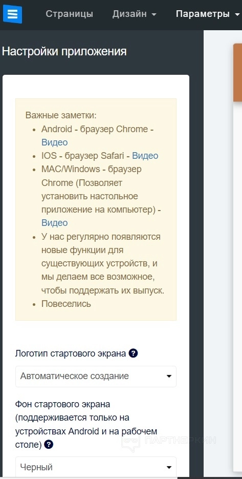 С помощью Панели управления в редакторе можно превратить сайт в функциональное мобильное приложение.