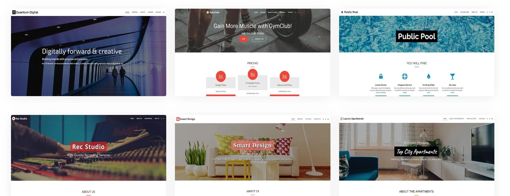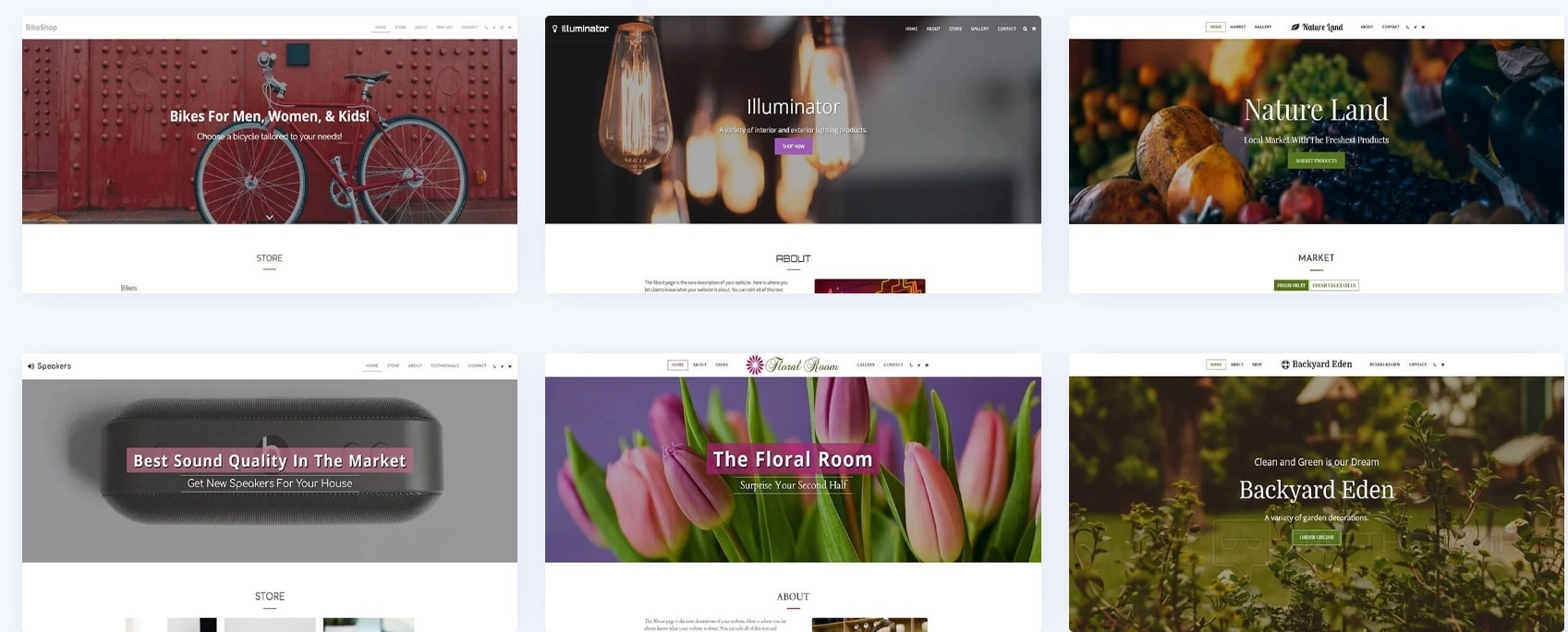 - Широкий выбор шаблонов — несколько десятков под каждый тип сайта или бизнеса.