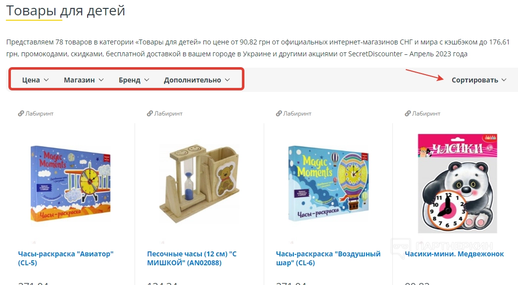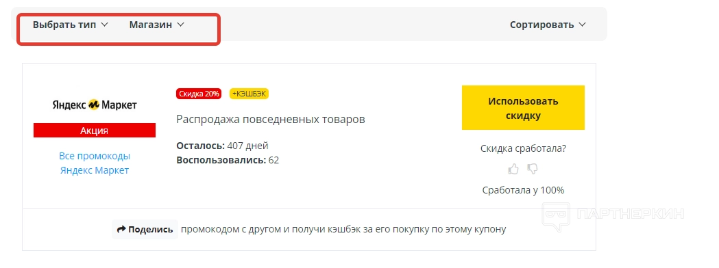 Также фильтр позволяет сортировать продукция с кешбэком по популярности, цене и размеру скидки.