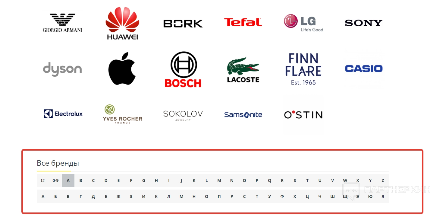 Еще один плюс — возможность поиска конкретных товаров с кешбэком. Для этого в сервисе предусмотрена база торговых позиций, которая разделяет эти позиции по категориям товаров. Если же пользователь хочет выбрать продукцию конкретного бренда, есть соответствующий блок, с помощью которого можно выбирать товары от определенных компаний, интернет-магазинов и маркетплейсов.