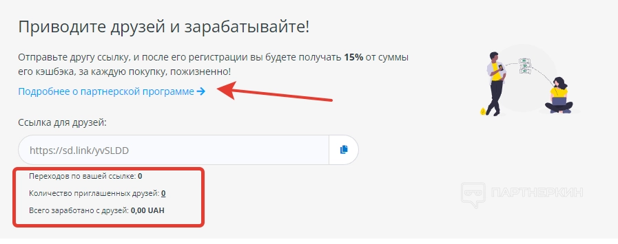 Также здесь находится реферальная ссылка. А ещё есть возможность получить больше информации о партнерской программе. Для этого жмем на соответствующую кнопку.