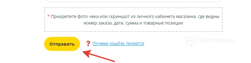 Также прикрепляем фото чека и жмем на кнопку отправки.