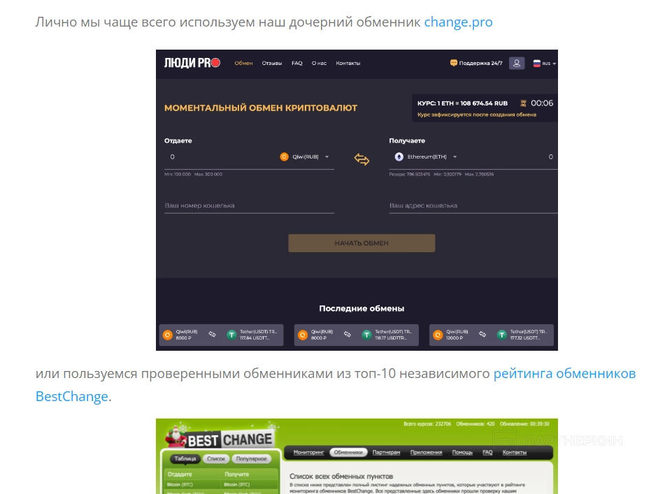 Второй способ вывода — использование кошельком и платежных систем. Например: