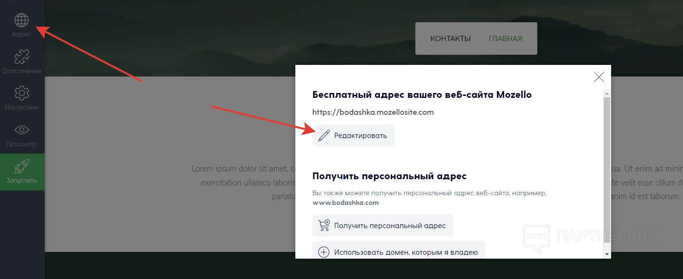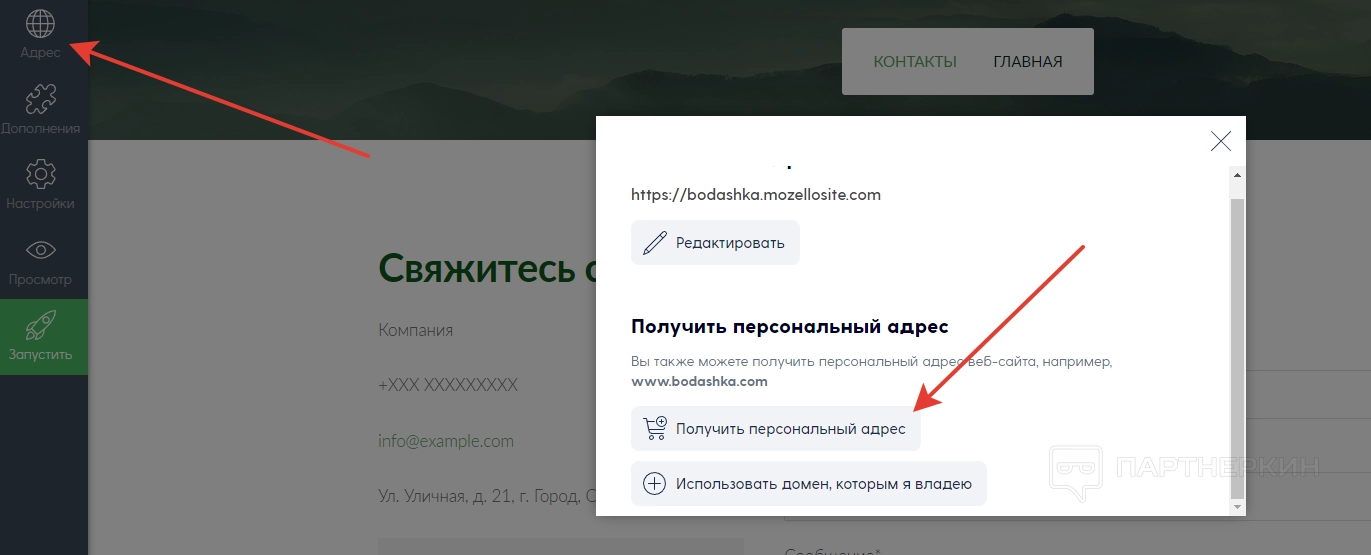 Если же пользователь не хочет оставлять бесплатный адрес, тогда придется подключать персональный. В сервисе есть возможность приобрести домен по выгодной цене. Для этого нужно снова открыть раздел «Адрес» и выбрать пункт «Получить персональный адрес».