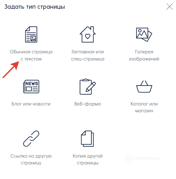 В нашем случае выбираем «Обычная страница с текстом» и идем далее.