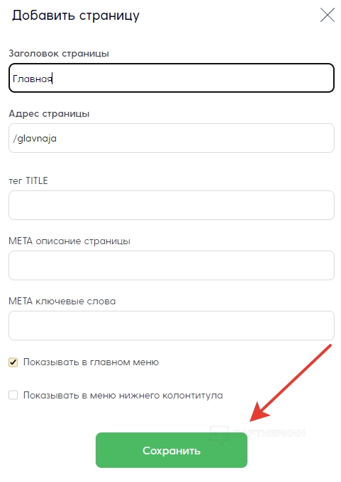 В открывшейся форме задаем название и ссылку будущей страницы. Кликнув на «Дополнительные параметры», пользователь откроется окно, где нужно будет ввести Title, мета описание страницы и ключевые слова. В конце жмем кнопку «Сохранить».