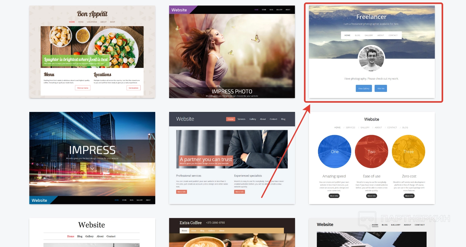 Сразу после регистрации откроется каталог шаблонов, в котором пользователь должен выбрать  один из вариантов. Дизайн макета можно поменять в любое время. Цвета, шрифты и изображения тоже меняются по усмотрению.