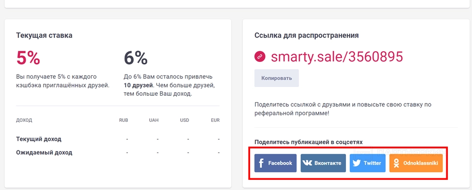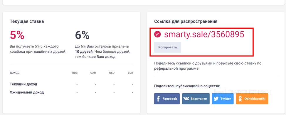 Помимо возврата денег за покупки есть возможность дополнительно заработать на рефералах. Для привлечения друзей скопируйте партнерскую ссылку и поделитесь ею на своем сайте или в социальных сетях.