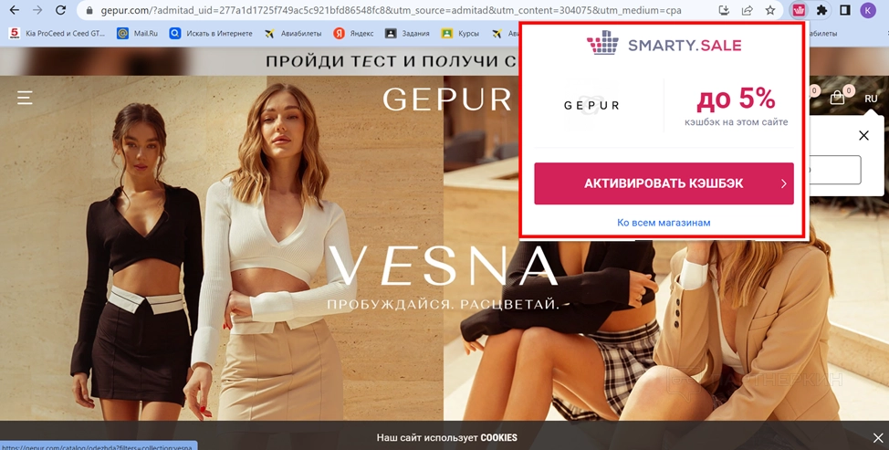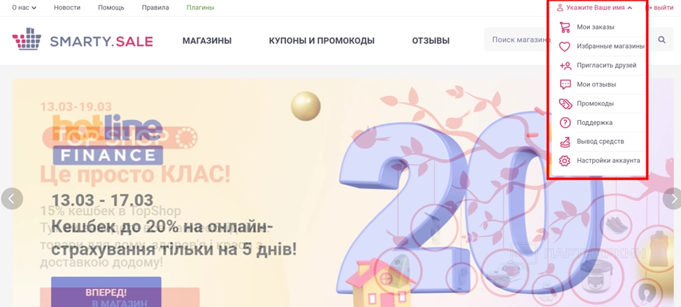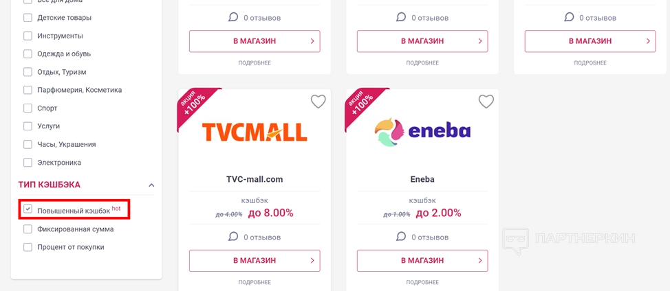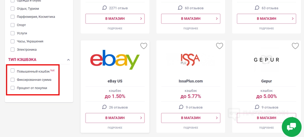 - специальная ссылка на магазин для получения кешбэка за покупки;