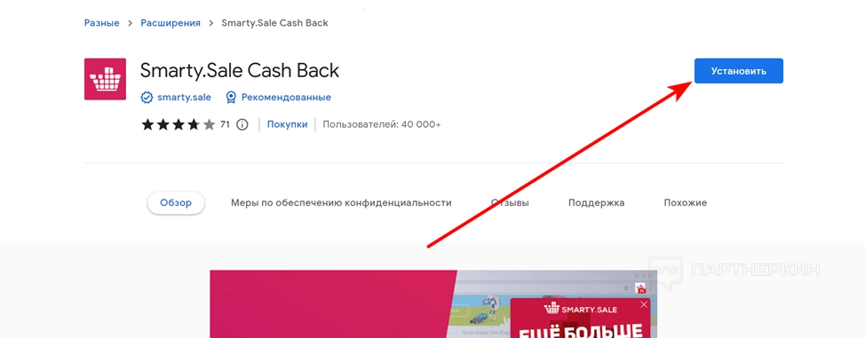 - Дальше в магазине для расширений нажмите на кнопку «Установить». Согласитесь с политикой сервиса.