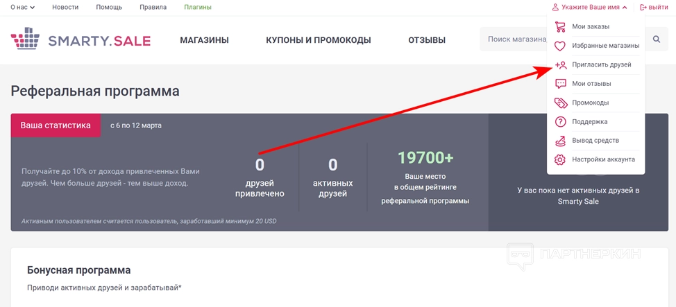 - В меню личного кабинета откройте вкладку «Пригласить друзей».