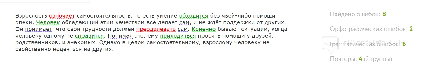 На основании данного тестирования явно прослеживается схожесть с орфографическим модулем MS Office, который также производит анализ отдельных слов, в первую очередь. При этом можно пропускать некоторые моменты, которые намеренно написаны ошибочно.