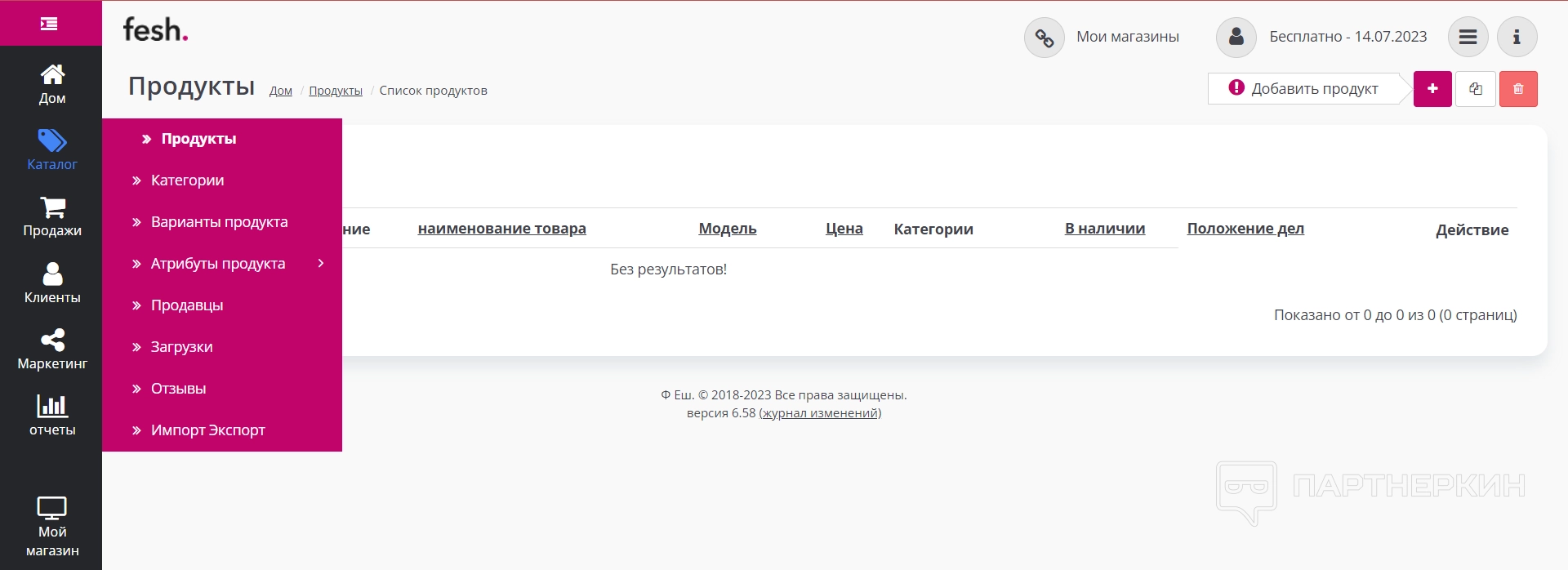 Каталог — в этом разделе пользователи могут просматривать те продукты, категории товаров, атрибуты, которые он добавил в свой магазин.