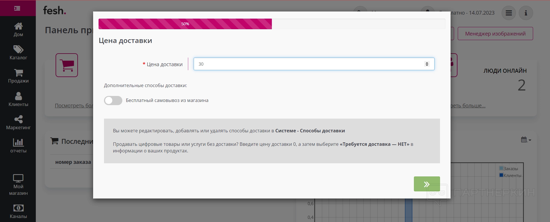 Следующий этап — это указание стоимости доставки в магазине. Можно также отметить, что самовывоз из магазина бесплатный.