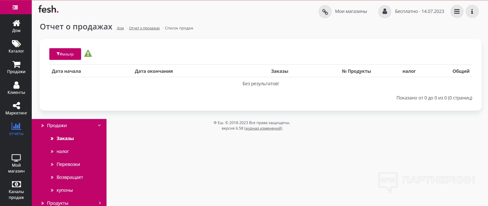 Отчеты — в этом разделе можно создавать разнообразные отчеты по итогам работы магазина. Например, в целом о продажах, о налогах, продуктах или клиентах магазина.