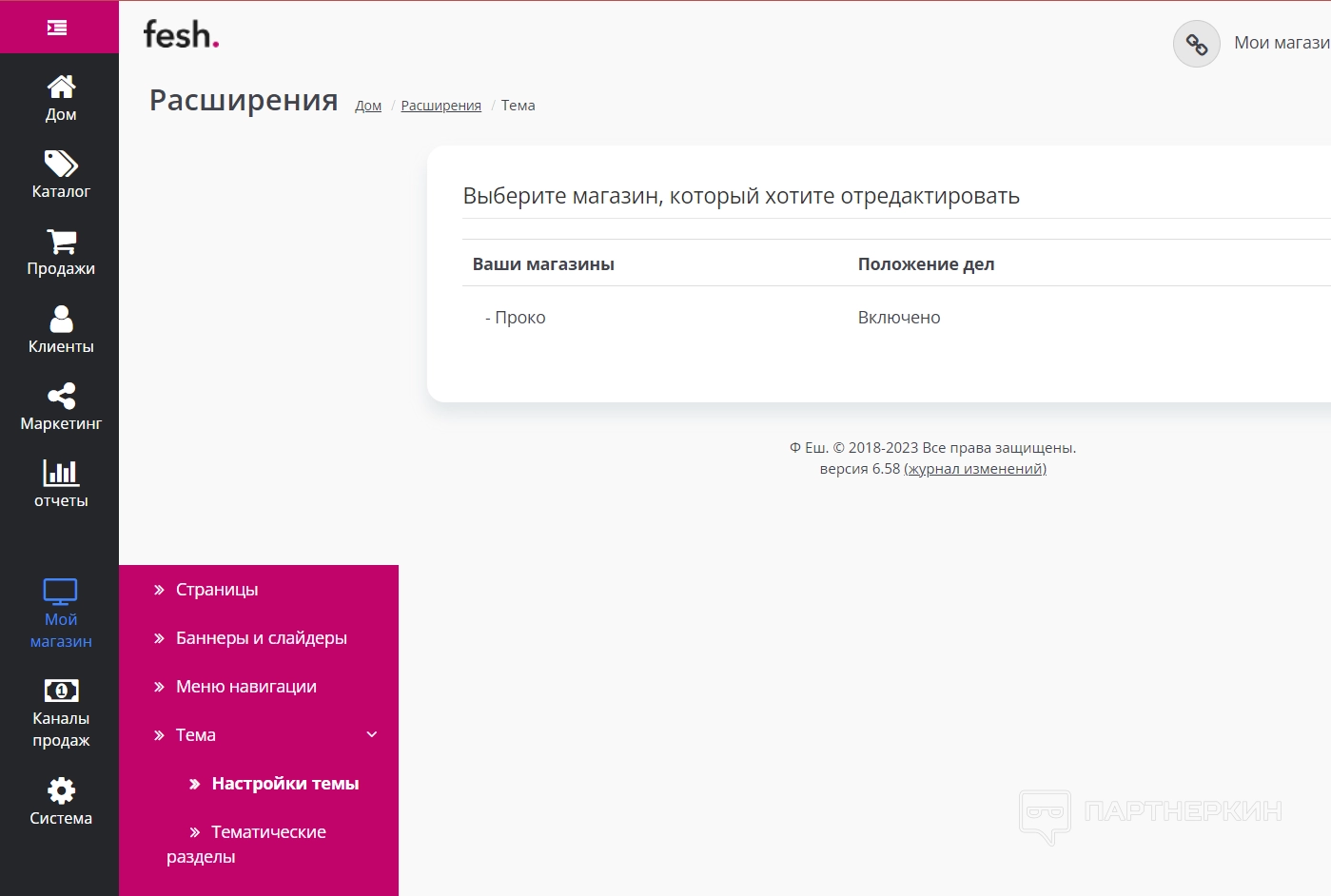 Мой магазин — здесь происходит настройка страниц магазина. Например, можно добавить или изменить заголовки страниц, отредактировать или добавить слайдеры, а также изменить меню навигации или в целом тему.