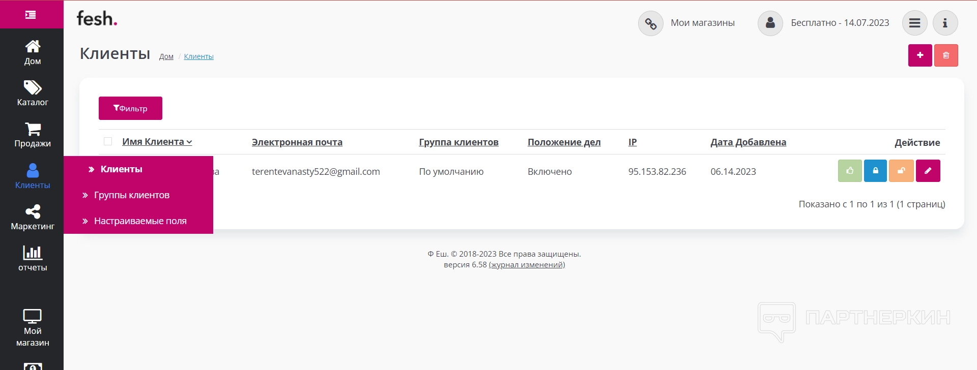 Клиенты — по аналогии с предыдущим разделом в этом отображается в виде таблицы все клиенты магазина и группы клиентов.