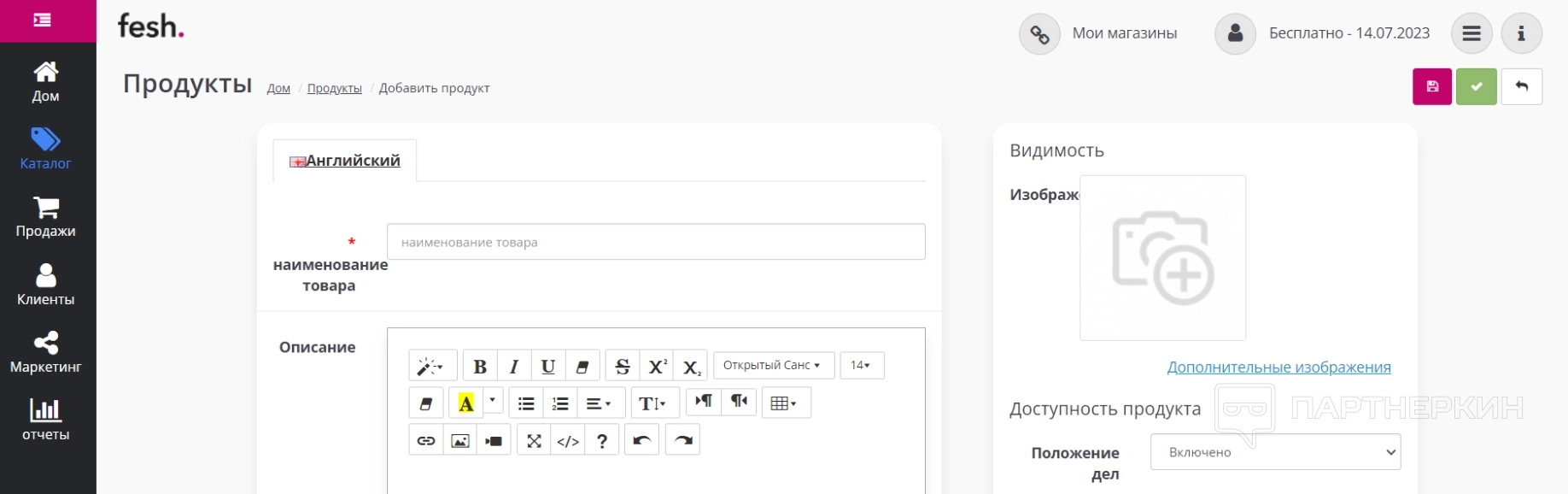 Если списки пусты, всегда можно добавить новую единицу — для этого нажимается одноименная кнопка сверху с правой стороны. Сразу после нажатия откроется дополнительная страница с настройкой карточки товара.