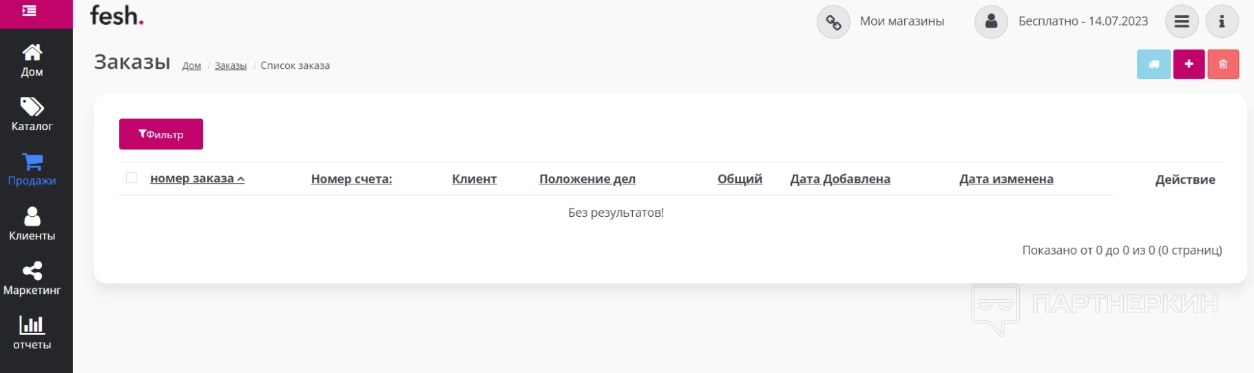 Продажи — в этом разделе подбивается информация по всем заказам, платежам и возвратам. Это отображается в виде таблицы, где можно узнать номер заказа, номер счета клиента, имя клиента, состояние и прочее.