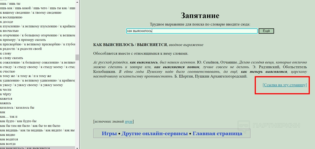 Внимание! Для каждого словосочетания можно скопировать ссылку на страницу.