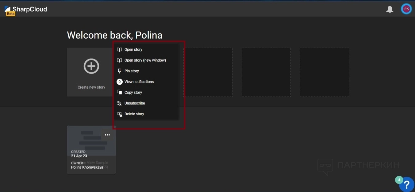 Сохраненный проект будет отображаться на главном экране сервиса. Как говорилось выше, его можно добавить в избранное, а также удалить, открыть для дальнейшей работы или просмотреть изменения, копировать и ограничить доступ.