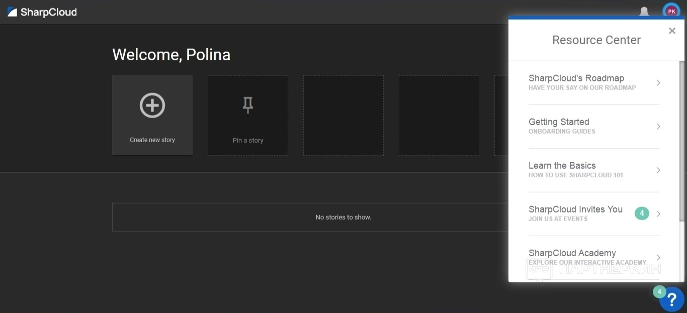 Знак вопроса в нижнем правом углу отвечает за ресурсный центр. В нем находятся полезные статьи из базы знаний, которые могут помочь в начале работы с сервисом или описать конкретный инструмент. Именно отсюда можно открыть и чат техподдержки.