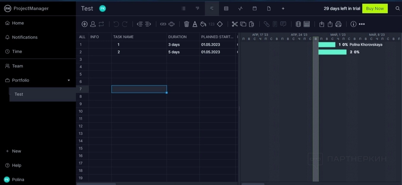 В целом, работа с проектом строится на заполнении данных о самой задаче по колонкам таблицы.