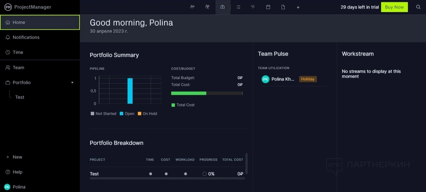 - Home — домашняя панель сервиса. Фактически это раздел, в котором кратко отображаются все доступные и указанные данные пользователя: количество проектов, его рабочая команда и так далее.