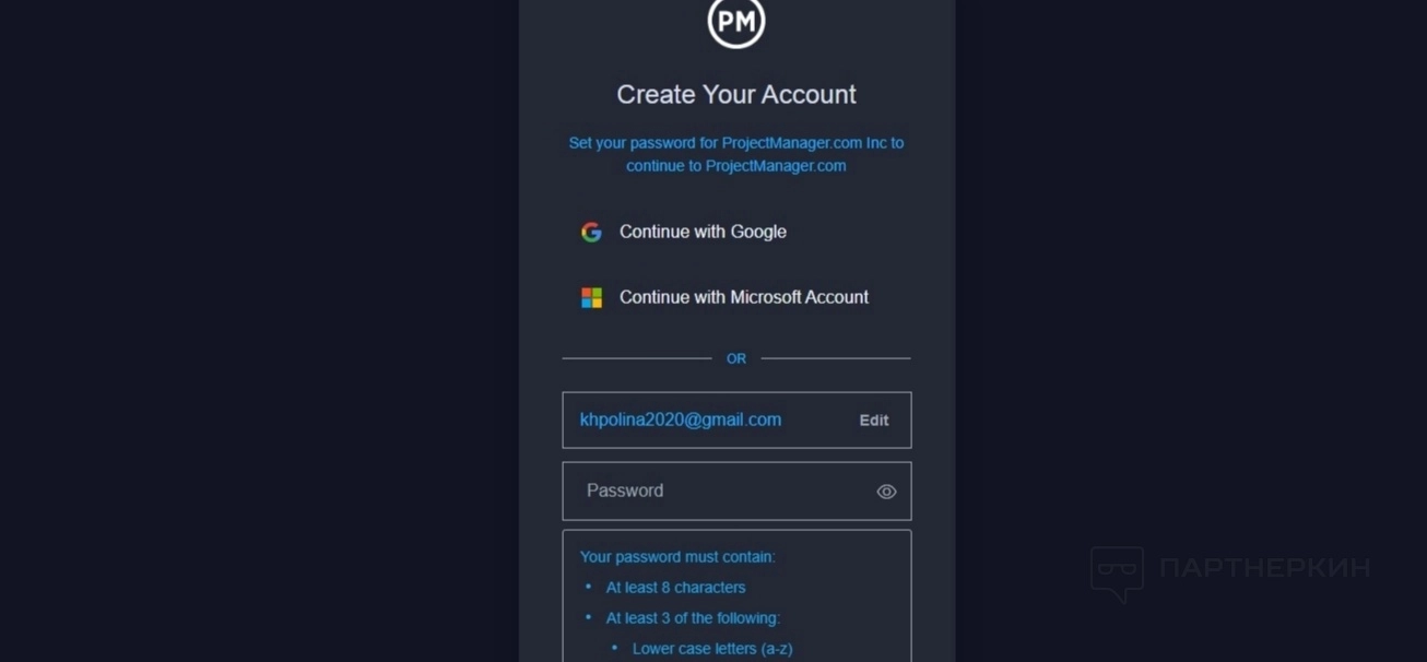 Следующий шаг — создание пароля для последующего входа в свой кабинет.
