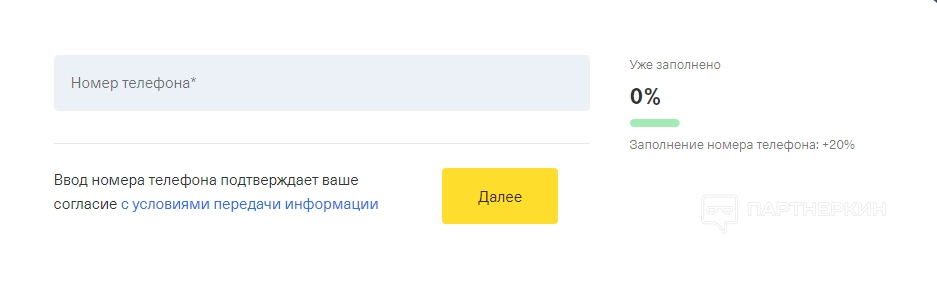 Если пользователя все устраивает, необходимо указать номер мобильного телефона и нажать кнопку «Далее».