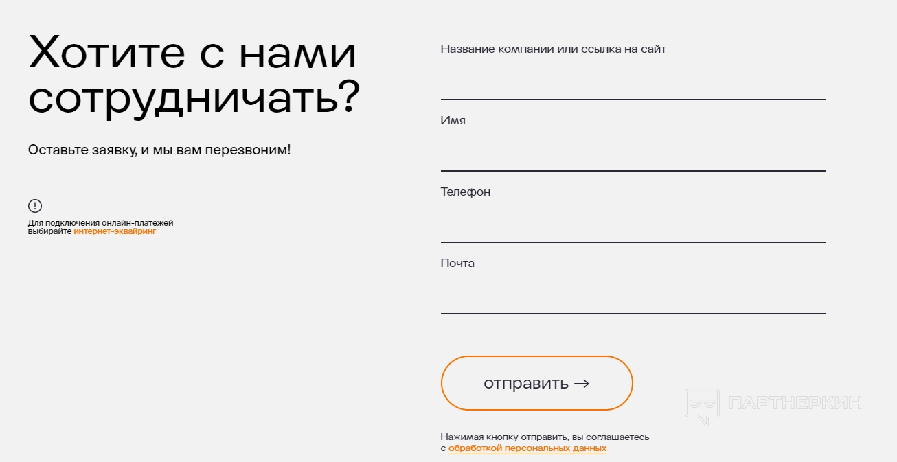 - После общения с менеджером необходимо заполнить анкету — указать персональные данные, информацию о своей деятельности и реквизиты для получения платежей.