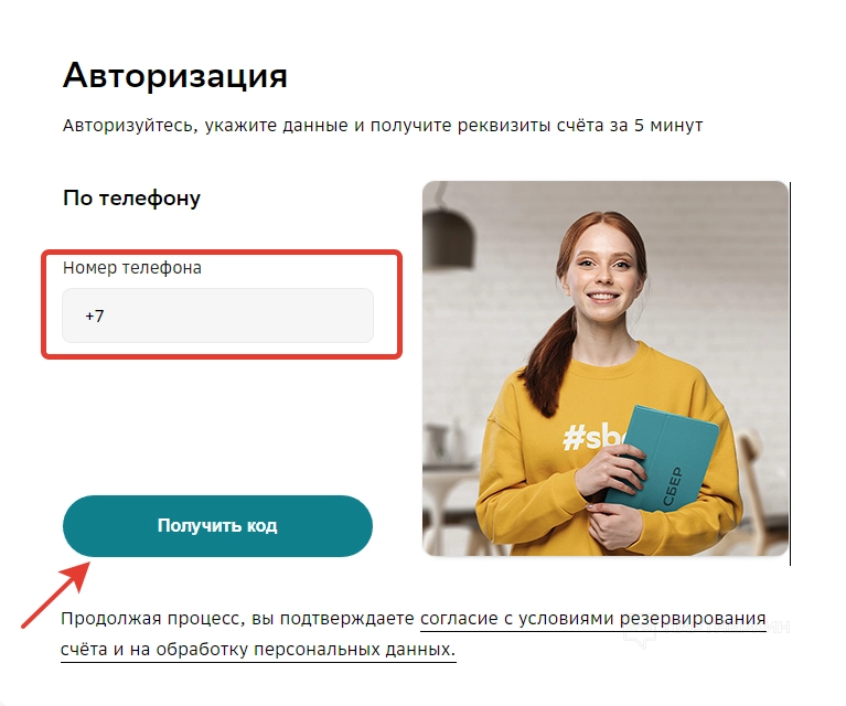 Заполняем данные, отправляем заявку и ждем звонка от представителей банка. Когда счет будет создан, нужно получить номер и реквизиты для работы с документацией. Для этого справа от форму кликаем на «Получить реквизиты» и в новом окне вводим номер телефона, на который придет код для авторизации.