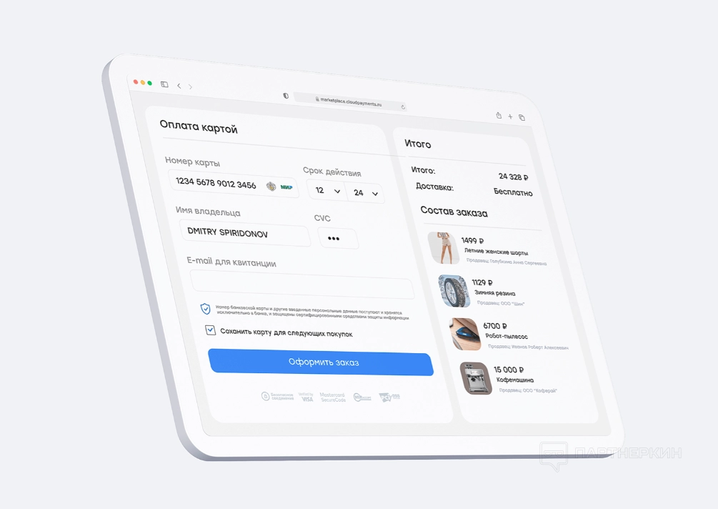 Сервис позволяет клиентам совершать покупки на сайте в один клик, используя сохраненные данные банковской карты. Инструмент удобен для пользователей — он экономит время и упрощает оплату, а также может увеличить конверсию и удержать клиентов на ресурсе.